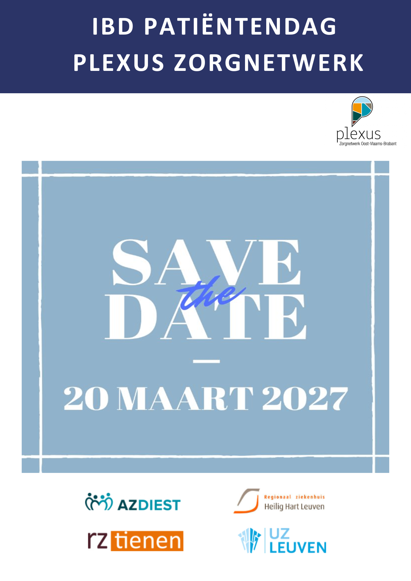 Save the date IBD Patiëntendag Plexus zorgnetwerk - 20 maart 2027 10 jan Geschreven door Tim Caenepeel Tim Caenepeel