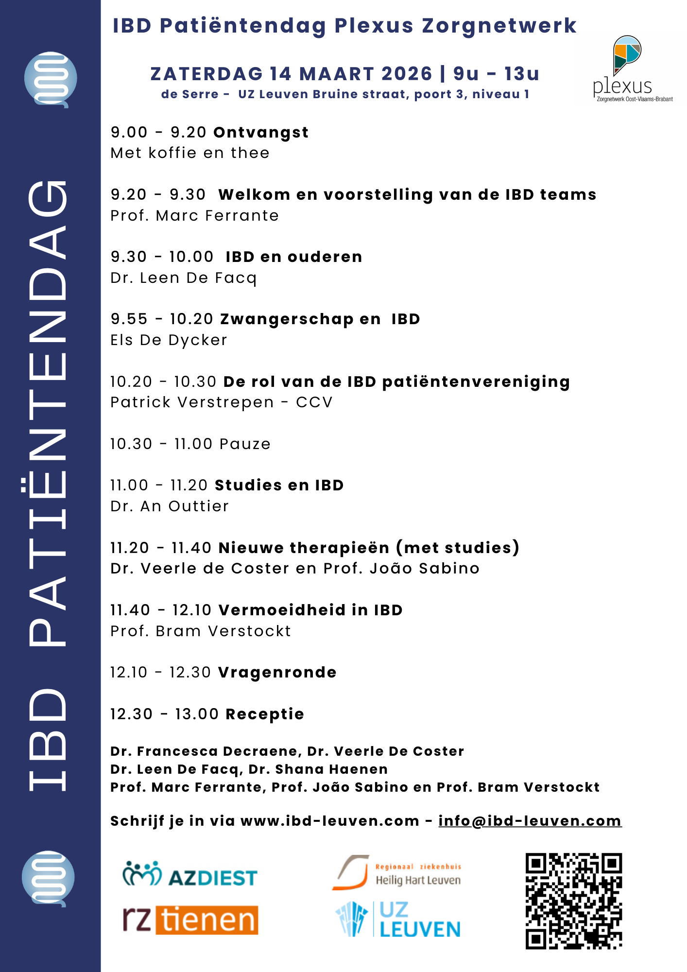 Save the date - IBD Patiëntendag 2026 10 jan Geschreven door Tim Caenepeel Het IBD team organiseert een IBD-patiëntendag op 14 maart 2026. Inschrijven Tim Caenepeel